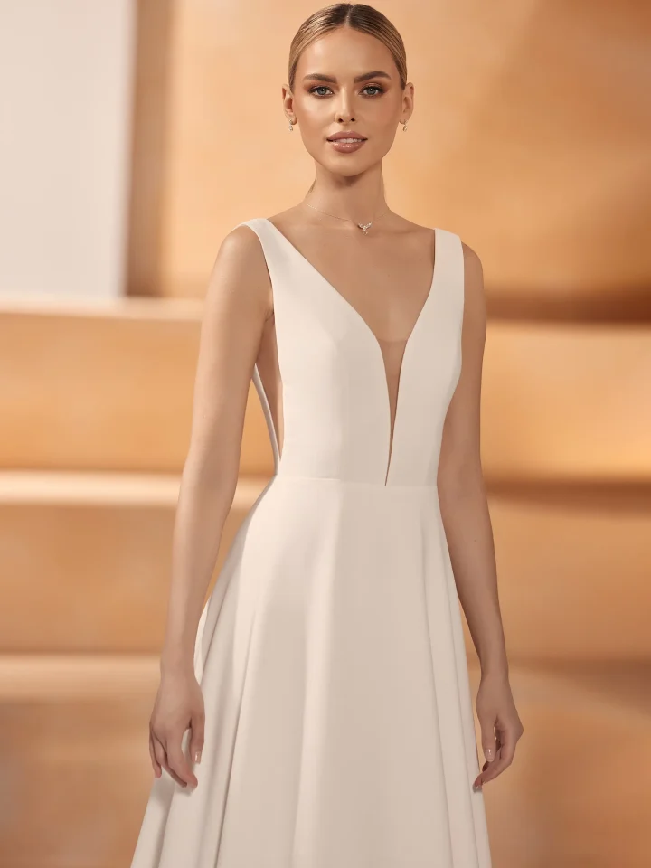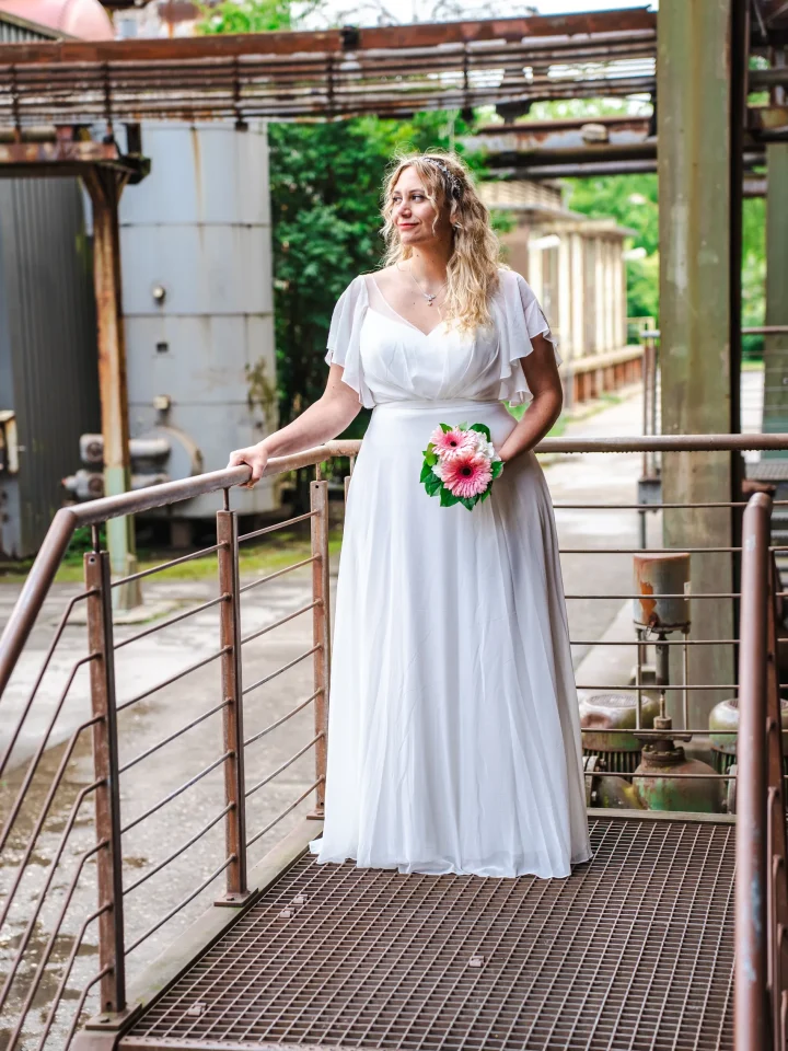 - Die A-Linie streckt die Figur optisch, daher auch für kleine und zierliche Bräute geeignet.