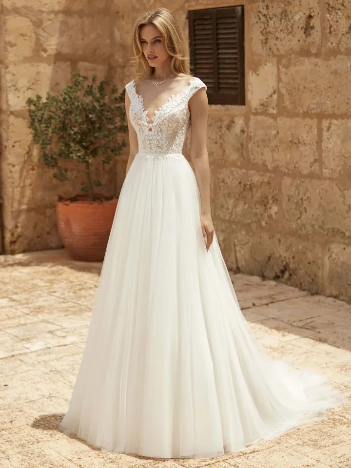 Die A-Linie ist ideal für Bräute, die sich Bewegungsfreiheit und eine schmeichelhafte Passform wünschen. Lass dich von unserer Auswahl inspirieren und buche jetzt deine kostenlose Beratung, um dein perfektes A-Linienkleid zu finden!